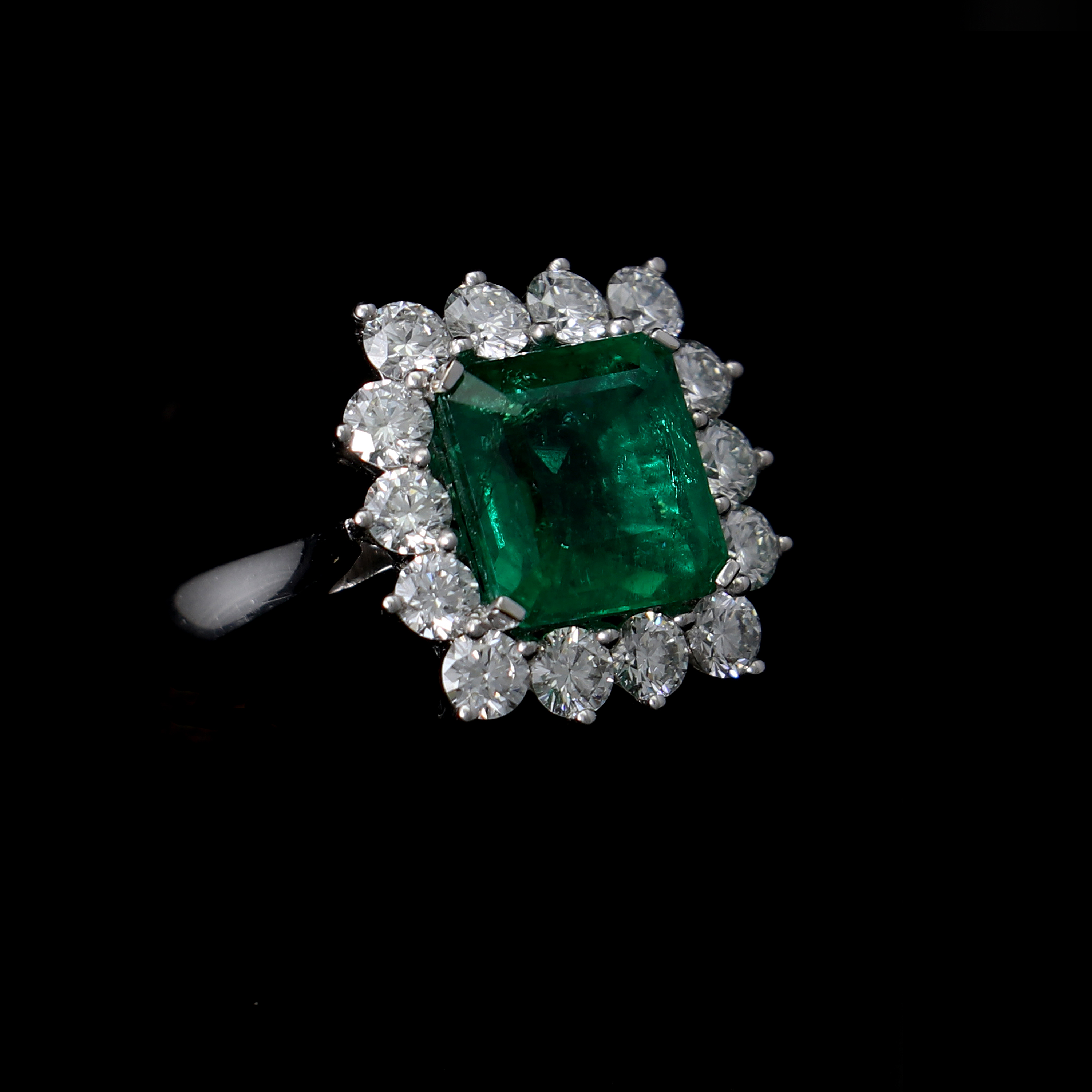 18kt white gold, emerald and diamonds